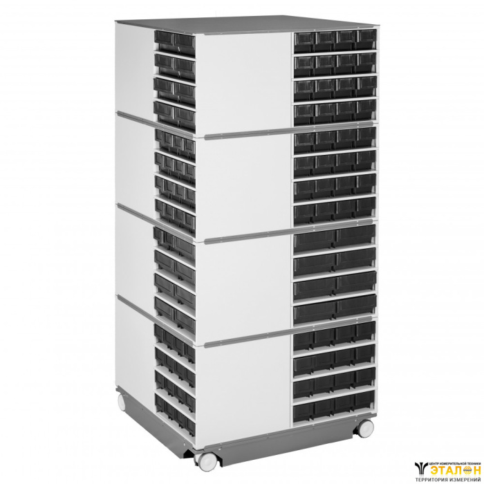 Максимально в 1 поворотную стойку СП-01 ESD вмещается до 256 узких пластиковых кейсов или до 128 широких кейсов. Под заказ возможна комбинация тумб с узкими и широкими кейсами. Поворотная стойка может быть заказана как в полном комплекте, так и по частям.