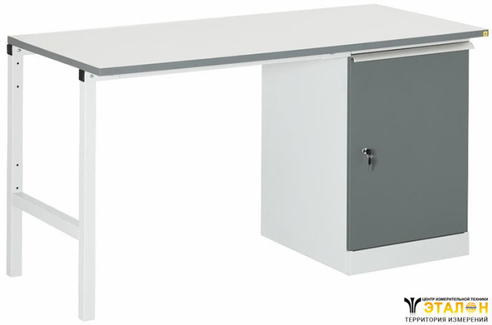 Стол рабочий КОНСТАНТ СР-12-7+ТМБ-01 ESD, антистатическое исполнение укомплектован обычной «ногой» и тумбой с дверцей.
