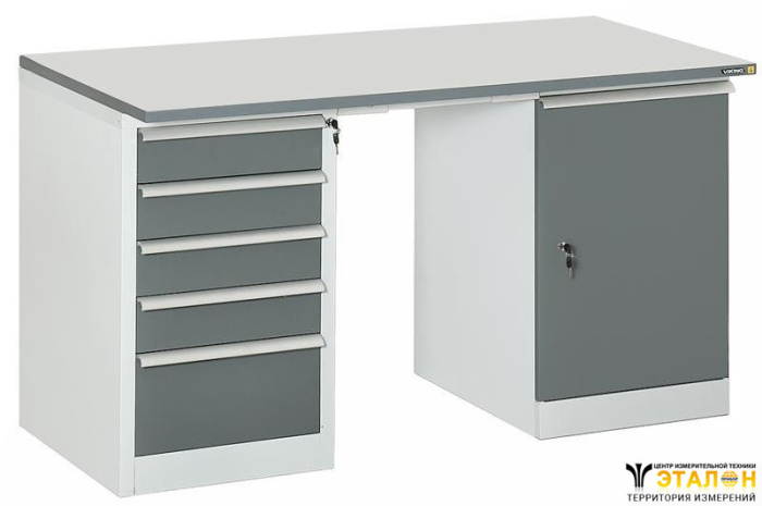 Стол рабочий КОНСТАНТ СР-15-7+ДР-05+ТМБ-01 ESD, антистатическое исполнение укомплектован планшетным драйвером и тумбой с дверцей.