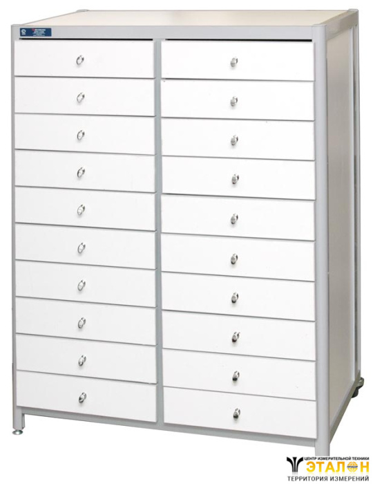 Стойка комплектовочная АКТАКОМ АРМ-2286-9 является удобным дополнением рабочего места на производстве или в лаборатории, везде, где необходимо организовать упорядоченное хранение малогабаритных деталей, комплектующих или инструмента. Габаритные размеры (ш х г х в): 83 х 50 х 118 см. Цвет каркаса из алюминиевого профиля - серый (RAL 9006), цвет ДСП - белый. В стойке АРМ-2286-9 имеются 20 выдвижных ящиков размерами 33 x 40 x 8 см, расположенных в два ряда. Наличие 2 колёс позволяет легко перемещать стойку по помещению. Также имеются 2 винтовые ножки.