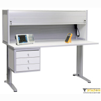 Стол-бюро АКТАКОМ АРМ-4715 позволяет рационально и удобно организовать рабочее место для эффективной работы. Цвет алюминиевого каркаса - серый (RAL-9006), цвет ДСП - белый. Столешница размером 100 x 80 см обладает высокой ударопрочностью, устойчивостью к истиранию, воздействию химикатов (растворителей и т.д.), а также противостоит воздействию температур до +230 °C. Расстояние от столешницы до пола 750 мм с регулировкой опорами +10 мм. У стола АРМ-4715 установлена подвижная система жалюзей с двумя замками. В стандартной модификации полки фиксированы по высоте. Для освещения рабочей зоны стол АРМ-4715 оборудован светодиодным светильником 10 Вт. Для электропитания приборов и другого оборудования предусмотрен блок из 6 розеток с выключателем. Имеются разъемы заземления. Высота 131 см.