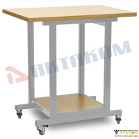 Наличие дополнительной полки под столешницей позволяет разместить оборудование или аксессуары, что очень удобно при перемещении подкатного стола между разными рабочими местами. В этом случае аксессуары (соединительные провода, ЗИП) всегда находятся рядом с местом работы с приборами, размещенными на подкатном столе.