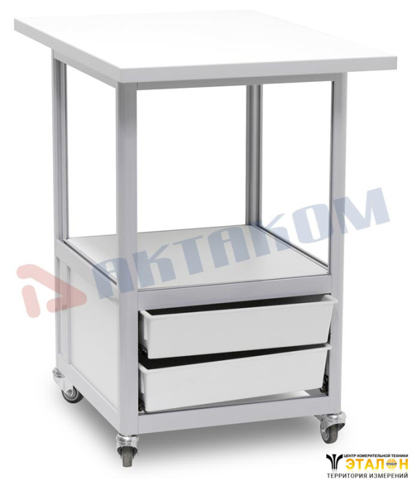 Наличие выдвижных ящиков и полки позволяет разместить оборудование и комплектующие или аксессуары, что очень удобно при перемещении подкатного стола между разными рабочими местами. В этом случае аксессуары (соединительные провода, ЗИП) всегда находятся рядом с местом работы с оборудованием, размещенным на подкатном столе.