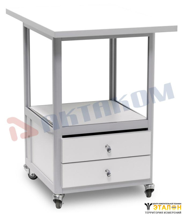 Наличие выдвижных ящиков и полки позволяет разместить оборудование и комплектующие или аксессуары, что очень удобно при перемещении подкатного стола между разными рабочими местами. В этом случае аксессуары (соединительные провода, ЗИП) всегда находятся рядом с местом работы с оборудованием, размещенным на подкатном столе.