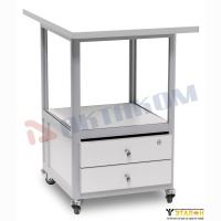 Наличие выдвижных ящиков и полки позволяет разместить оборудование и комплектующие или аксессуары, что очень удобно при перемещении подкатного стола между разными рабочими местами. В этом случае аксессуары (соединительные провода, ЗИП) всегда находятся рядом с местом работы с оборудованием, размещенным на подкатном столе.