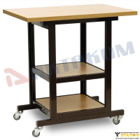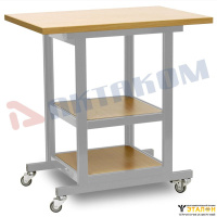 Наличие двух полок под столешницей позволяет разместить оборудование или аксессуары, что очень удобно при перемещении подкатного стола между разными рабочими местами. В этом случае аксессуары (соединительные провода, ЗИП) всегда находятся рядом с местом работы с приборами, размещенными на подкатном столе.