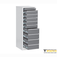 У антистатического стола АРМ-4650-ESD имеется надстройка - ресепшен 150х30 см над столешницей и угловая перегородка высотой 60 см (слева). В стандартной модификации полки фиксированы по высоте.