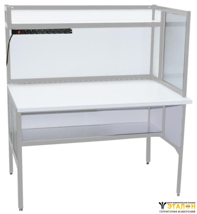 У стола АРМ-4420 имеется перегородка высотой 60 см правосторонняя (левосторонняя - по заказу) и одна полка 120x20 см над столешницей. Также есть полка 120х30 см с задней стенкой под столешницей. В стандартной модификации полки фиксированы по высоте. Для освещения рабочего места стол инженера/менеджера АРМ-4420-9 оборудован двумя светодиодными светильниками по 8 Вт. Для электропитания приборов и другого оборудования предусмотрен блок из 8 розеток с выключателем. Высота 134 см.