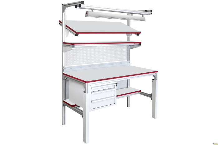 В антистатическом исполнении, согласно требованиям стандарта ГОСТ IEC 61340-5-1-2019, столешница на лицевой стороне имеет маркировку — знак ESD (Electrostatic sensitive device), обозначающий работу с материалами, чувствительными к электростатическому разряду.