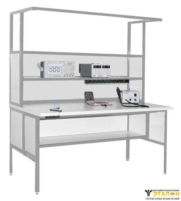 У стола регулировщика АРМ-4250-9 имеются две полки 150 x 30 см с глухой задней стенкой над столешницей, что позволяет удобно расположить измерительные приборы и прочее оборудование. В стандартной модификации полки фиксированы по высоте, но их можно передвинуть вверх на нужное расстояние (при этом будут просветы между ДСП и профилем). Также имеется одна полка 150 x 30 см с глухой задней стенкой под столешницей. По всей ширине стола установлена кронштейн-штанга, на которой можно разместить подвесной инструмент.