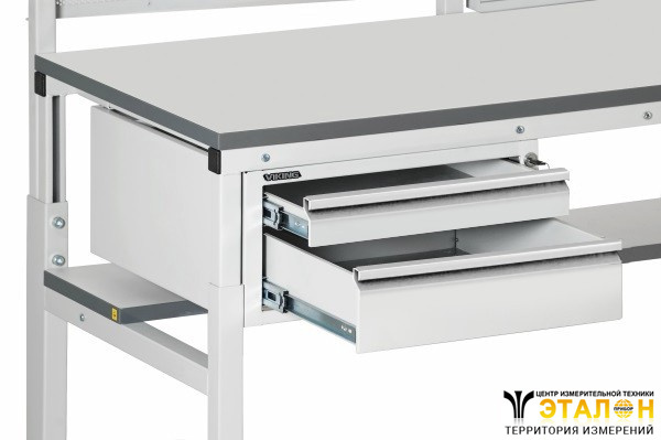 Стальная тумба ТП-20/П в качестве дополнительного элемента рабочего стола подвешивается под его столешницей и используется для хранения инструментов и компонентов. Оснащена центральным замком. Имеет выдвижные ящики с механизмом легкого скольжения (телескопические направляющие), выдвигаются на 550 мм. Внутренние размеры ящиков (Ш х В х Г) следующих типоразмеров 400×45×430 мм и 400×100×430 мм. Нагрузка на ящик — до 30 кг.