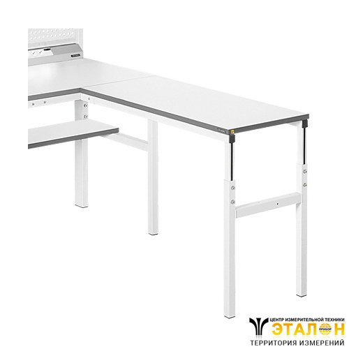 Угловая приставка для рабочих столов КЛАССИК и ОСТРОВ. Регулировка высоты столешницы 650 – 950 мм. Нагрузка до 150 кг. Антистатическое исполнение.