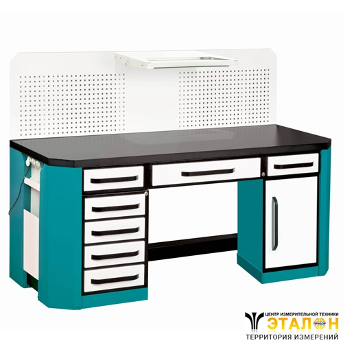 Все верстаки оснащены небольшими боковыми полками под столешницей. Комбинация цветов по умолчанию: RAL 5021 (бирюзовый), RAL 9005 (черный) и RAL 9010 (белый). Текстура краски – матовый муар.