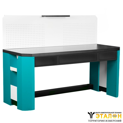Все верстаки оснащены небольшими боковыми полками под столешницей. Комбинация цветов по умолчанию: RAL 5021 (бирюзовый), RAL 9005 (черный) и RAL 9010 (белый). Текстура краски – матовый муар.