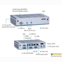 Встраиваемый безвентиляторный компьютер eBOX625-312-FL-DC-N3350, процессор Intel Celeron N3350. 2.4 ГГц, DDR3L-1866 МГц, до 8 Гб, 1 x 2.5" SATA HDD, 1 x mSATA, 1 х HDMI, 1 х VGA, 2 х GbE LAN, 2 x USB 2.0, 4 x USB 3.0, 1 x RS-232, 2 x RS-232/422/485, 2 x Full-size PCI Express Mini Card, 1 x SIM (адаптер 12В/60Вт и кабель питания опционально)