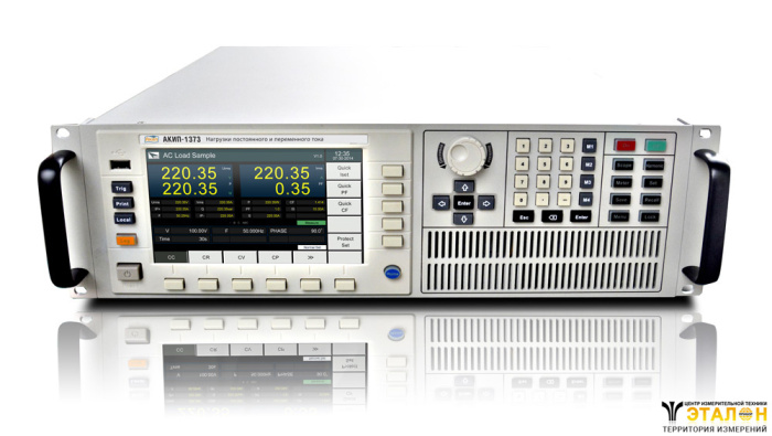 представляет собой программируемую электронную нагрузку переменного и постоянного тока. В арсенале технических возможностей АКИП-1373 широкий набор измерительных режимов и функций, таких, как: режим осциллографа для отображения сразу 2-х форм входного сигнала на дисплее (ток и напряжение), одновременная индикация до 12 измеряемых параметров (Vrms, Vpk, Vdc, Irms, Ipk, Idc, F, W, VA, VAR, CF, PF), режим измерения и анализа гармоник напряжения (до 50-й) входного сигнала, построение гистограмм, параллельное соединение для увеличения отбираемой мощности (до 5 нагрузок).
