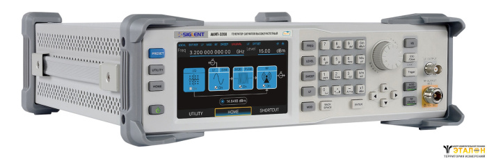 | Особенности | В диапазоне частот от 9 кГц до 100 кГц параметры спектра (искажения) выходного сигнала не нормируются. Внешняя IQ модуляция в диапазоне 10 МГц ... 3,2 ГГц. Опция - генератор пачек импульсов. Вход, выход сигнала опорной частоты. Фазовый шум < -110 дБн/Гц (отстройка на 20 кГц от несущей 1 ГГц). |