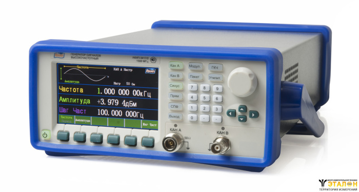 | Особенности | Канал A (система ФАПЧ) - синус, прямоугольник. Канал B (DDS) - синус, прямоугольник, треугольник, импульс, Sync, экспонента, шум, DC (пост. смещ.), до 10 Впик (50 Ом). |
