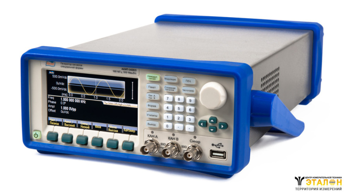 | Особенности | Два полностью независимых источника колебаний. Стандартные формы сигналов - 7 вида. Режим формирования сигнала произвольной формы, дискретизация до 500 МГц (146 видов). Режим SUM, сложение 2-х выходных сигналов. Встроенный частотомер до 350 МГц. Формирование выходного сигнала путем задания гармоник (50 макс.) Опция - усилитель мощности до 2 Вт, 50 Ом. |