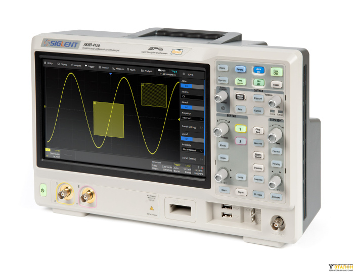 | Особенности | Переключаемая разрядность АЦП, до 10 бит в полосе пропускания до 100 МГц и длине памяти 100 МБ. Возможность увеличения полосы пропускания до 350 МГц (программная опция). Высокая скорость обновления экрана до 500.000 осц./сек. Режим сегментированной памяти. Режим HISTORY. Интерполяция - Sin X/х, линейная. Автоматические (более 50-и параметров) и курсорные измерения. Математические функции, БФП. Режим «Поисковая машина/ Search» для поиска событий по условиям заданным пользователем. Синхронизация и декодирование сигналов, стандартно, I2C, SPI, UART/RS232, CAN, LIN, опционально, I2S, MIL-1553, FlexRay, CAN FD. Опция - логический анализатор 16 каналов. Опция - функциональный генератор до 50 МГц. |