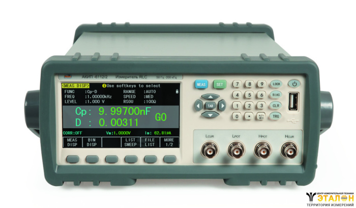 | Измеряемые параметры | комплексное сопротивление на переменном токе (R, Z, X), сопротивление постоянному току (DCR/тест-сигнал 5Гц), ЭПС (ESR), проводимость (G, Y, B), ёмкость (С), индуктивность (L), тангенс угла потерь (D), добротность (Q), фазовый сдвиг °/rad |