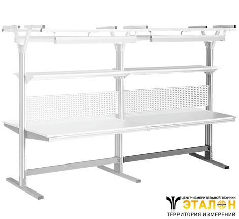 Стол на алюминиевом профиле АЛ-О-12-7: эргономичность, удобная система регулировки рабочих поверхностей (столешница, полка, освещение) по высоте, в том числе для работы в положении стоя.