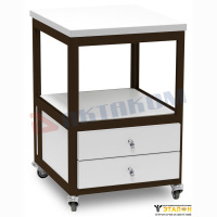 Благодаря легкости передвижения столешницы, полки и освещения по боковым направляющим алюминиевой рамы обеспечивается возможность установки рабочих поверхностей на требуемой высоте и непревзойденный комфорт при работе, в том числе и в положении стоя. При возникновении необходимости изменить высоту рабочей поверхности, пользователь может легко самостоятельно переместить столешницу, полку и освещение.