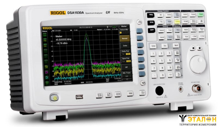 Анализатор спектра Rigol DSA1030A представляет собой прибор с небольшими размерами и весом, имеющий отличное соотношение цены и возможностей. Цифровая технология ПЧ обеспечивает исключительную производительность и стабильность при анализе спектра. В анализаторе спектра Rigol DSA1030A имеется возможность расширенных измерений мощности, гармоник, шумов и искажений, ЭМИ измерений, а опциональный трекинг-генератор позволяет использовать анализатор спектра Rigol DSA1030A для измерения S-параметров.