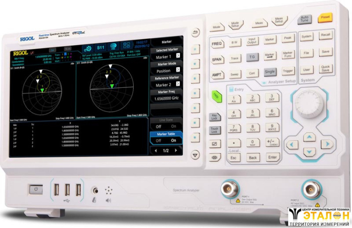 Анализатор спектра Rigol RSA3015N способен работать как в режиме обычного свипирующего анализатора спектра (GPSA режим), так и в режиме анализатора спектра реального времени (RTSA). Кроме того, RSA3015N может быть использован в качестве векторного анализатора для измерения S-параметров. В этом приборе применена инновационная технология Ultra-Real, которая обладает рядом преимуществ, например, позволяет проводить анализ спектра в реальном времени с гарантированным захватом сигнала: полоса анализа до 40 МГц (опция), скорость обработки до 146484 преобразований в секунду.