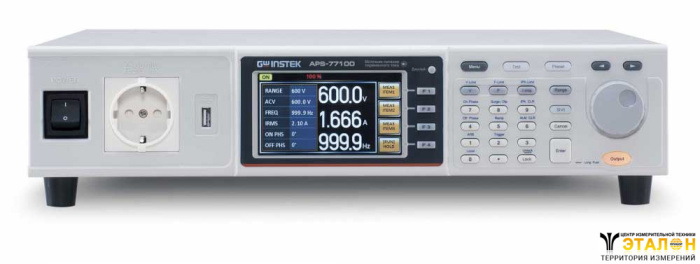 | Особенности | Предустановлена Опция APS-710, которая обеспечивает измерительные функции (коэффициент мощности, броски пускового тока и испытательные режимы - программирование, регулирование скорости нарастания/ спада напряжения по времени. Создание и воспроизведение тестовых последовательностей и сигналов произвольной формы. Дискретность установки 0,01 В/ 0,01 Гц. Низкий коэффициент гармоник (0,5%). Опция, увеличение диапазона выходного напряжения 0 ... 600 В и частоты до 999,9 Гц. |