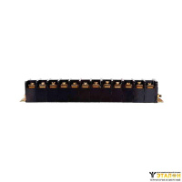 Зажим блока изготовлен из карболита (фенопласта) и состоит из изоляционного корпуса, контактного зажима, включающего в себя две скобы (арочные шайбы), контактную шину, два контактных винта с пружинной шайбой.
