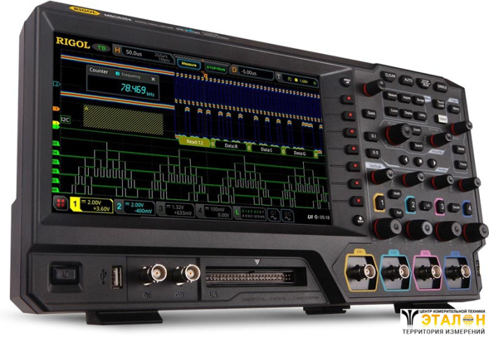 Цифровой осциллограф Rigol MSO5354 интегрирует в себе до семи измерительных приборов: цифровой осциллограф, 16-канальный логический анализатор, анализатор спектра, двухканальный генератор сигналов, цифровой вольтметр, 6-разрядный частотомер, анализатор протоколов. Осциллограф Rigol MSO5354 использует новейший процессор "Phoenix", разработанный компанией Rigol. Это обеспечивает частоту дискретизации в реальном времени до 8 Гвыб/с, а технология UltraVision 2 позволяет увеличить размер глубины записи до 200 М точек, скорость захвата осциллограмм до 500000 осц/с, а максимальный размер кадров при анализе осциллограмм до 450000. В цифровом осциллографе Rigol MSO5354 применен большой сенсорный дисплей, что наряду с традиционными органами управления на передней панели прибора делает пользовательский интерфейс простым и удобным, а также предоставляет возможность использовать зональный триггер.
