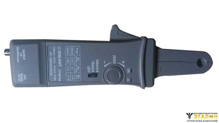 Токовый пробник для осциллографов. Полоса пропускания 300 кГц. Время нарастания ≤1,2 мкс. 2 диапазона: 10 мВ/А, 100 мВ/А. Максимальный ток: 200 Aпик-пик или 70 Аскз. Погрешность ±3 % ±50 мА (< 10 Апик-пик). Максимальный размер проводника (диаметр) - 11 мм. Батарейное питание – 9 В.