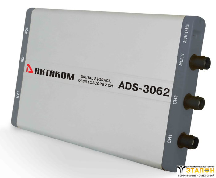 Двухканальный USB осциллограф - приставка АКТАКОМ ADS-3062 обладает глубиной записи 10 миллионов точек на канал. Отличительной чертой USB осциллографа ADS-3062 является ультратонкий (вего 18 мм) корпус. Для подключения к компьютеру, как у большинства виртуальных осциллографов, в ADS-3062 используется интерфейс USB.