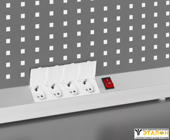 Короб с электромонтажной панелью Modern. Служит для расширения возможностей серии столов MT-U. Увеличивает рабочию глубину столещницы на 180 мм и обеспечивает подключение электроприборов. В стандартной комплектации имеет 8 европейских розеток с заземляющим контактом, автомат безопастности 10А, кнопку выключения и трехметровый сетевой провод.