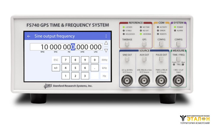 Стандарт частоты (источник опорного сигнала частоты 10 МГц) с синхронизацией от GPS, ГЛОНАСС, BEIDOU или GALILEO. (и внешних стандартов), возможность достижения долговременной стабильности не менее 1×10-13. Стандарт имеет выходы синтезированных частот (DDS), регулируемую частоту следования (скважность) импульсов и AUX выходов сигналов произвольной формы (arbitrary waveforms), включая выдачу сигнала IRIGB (расширение кода времени для покрытия года, качества времени, летнего времени, местного времени и високосной секунды). Погрешность частоты за 1 год не более 2х10-6 (кварцевый опорный генератор). Встроенный приемник GPS: поддержка до 12 спутников, время захвата сигнала и выхода на рабочий режим ~ 1 мин., относительная погрешность частоты в режиме удержания/сигнал GPS потерян 2х10-6 за год, антенна в комплект - не входит. Передняя панель: выход 10 МГц (синус)/ В скз, выход Aux (стандартные и произв. /Arb сигналы, синус, треугольник, пила, прямоугольник, AM IRIG-B, 100MHz), выход импульсных сигналов частотой 1 Гц (1 PPS), вход TIME / F