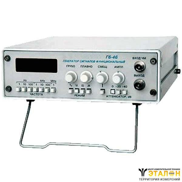 Г6-46 генератор сигналов функциональный проявляется как источники сигналов синусоидальной, прямоугольной, треугольной, пилообразной и прямоугольной (уровень ТТЛ) форм.