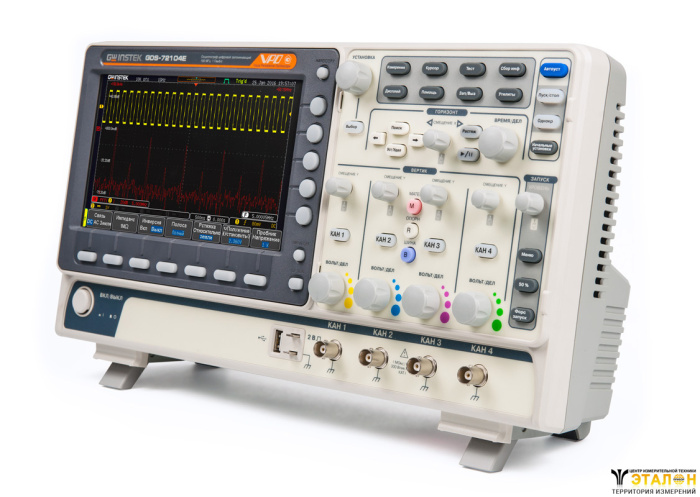 | Особенности | Технология VPO - визуализация сигнала в режиме аналогового осциллографа (скорость обновления экрана | 120.000 осц./с). Автоматические и курсорные измерения. Режимы растяжки, самописца и XY. Синхронизация по длительности импульса и ТВ. Математические функции и БФП. Цифровые фильтры. Режим сегментированной памяти (до 29,000 сегментов). Режим «Поисковая машина». Синхронизация и декодирование сигналов I2C/SPI/UART/CAN/LIN. Память - 24 осциллограммы, 20 профилей. Регистратор данных до 100 часов. Вывод данных на печать (поддержка PictBrige). |