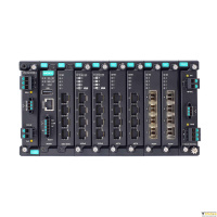 Модульный управляемый коммутатор 3 уровня с 4 портами Gigabit Ethernet, 6 слотами для установки 4-портовых модулей GE/FE (до 28 портов Gigabit), 2 слотами для установки модулей питания, рабочая температура от -10 до +60°C