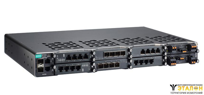 Управляемый коммутатор 2 уровня: до 28 портов Gigabit Ethernet c 4 предустановленными портами, 6 слотами для установки модулей расширения и 2 слотами для модулей питания