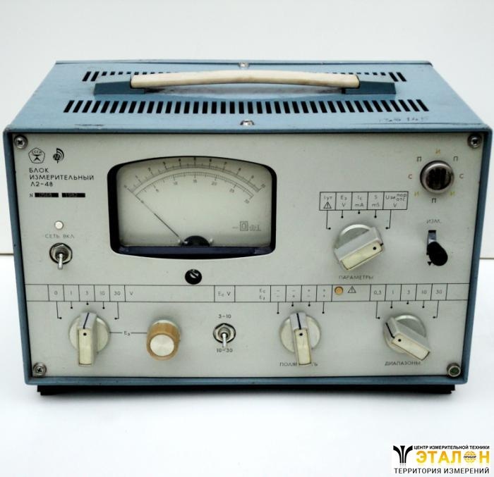 Л2-48 блок измерения пропускания токов предназначен для определения работоспособности маломощных полевых транзисторов всех типов путем измерения их основных параметров.