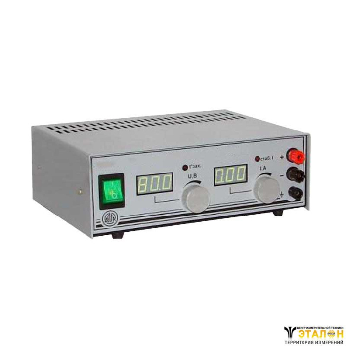 Источник имеет плавную установку выходного напряжения и тока, режим стабилизации напряжения и тока, а также автоматический переход в режим стабилизации тока.