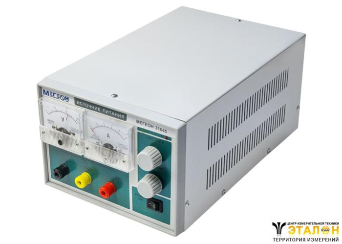 Одноканальный линейный источник питания постоянного тока МЕГЕОН 31645 представляет собой высокоточный прибор, обладающий высокой надежностью, функцией стабилизации напряжения и тока, оснащен всеми необходимыми защитами. Кроме этого источник имеет системы временной, температурной и токовой компенсации. Для отображения значений напряжения и тока в приборе используются стрелочные индикаторы. Диапазон выходного напряжения источника питания от 0…64 В. Выходной ток 0…5 А.