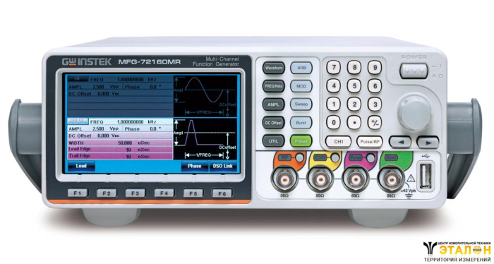 | Особенности | Все выходы полностью гальванически развязаны. Прямой цифровой синтез, разрешение по частоте 1 мкГц. Формы сигнала - стандартные (6 видов), произвольная форма (65 видов). Возможность редактирования СПФ без подключения к ПК. Встроенный частотомер до 150 МГц. Усиленная изоляция между выходами с поддержкой режима объединения с ИП постоянного тока (каскадное подключение) для увеличения амплитуды Uвых (AC-DC) до +42 В или -42 В. Программное обеспечение AWES для формирования сигналов произвольной формы. |