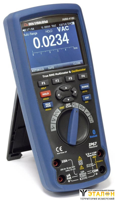 Цифровой мультиметр АММ-4189 имеет высокую точность измерения (0,025%) и широкие функциональные возможности. Помимо TrueRMS мультиметра, в АММ-4189 имеется функция осциллографа с полосой пропускания 10 МГц. Кроме того, в мультиметре-осциллографе АКТАКОМ АММ-4189 есть функции регистрации данных и построения трендов, что позволяет проводить измерения без участия человека. Благодаря использованию технологии Bluetooth, с помощью мультиметра АММ-4189 можно легко обнаружить и решить многие технические проблемы и произвести необходимую передачу данных для дальнейшей обработки и документирования результатов измерения.