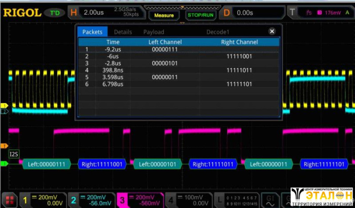 Опция MSO8000-AUDIO добавляет в осциллографы Rigol серии MSO8000 возможность декодирования и запуска по сигналам шины I²S.