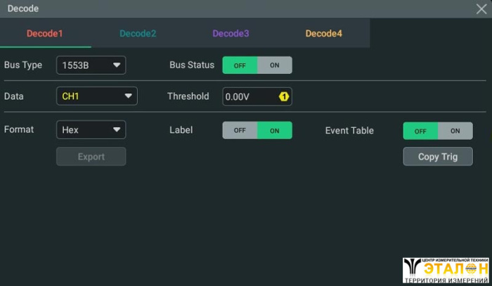 Опция DHO4000-AEROA добавляет в осциллографы Rigol серии DHO4000 возможность декодирования и запуска по сигналам шин MIL-STD-1553.