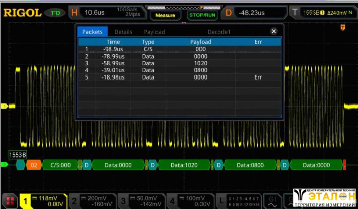 Опция MSO8000-AERO добавляет в осциллографы Rigol серии MSO8000 возможность декодирования и запуска по сигналам шины MIL-STD 1553.
