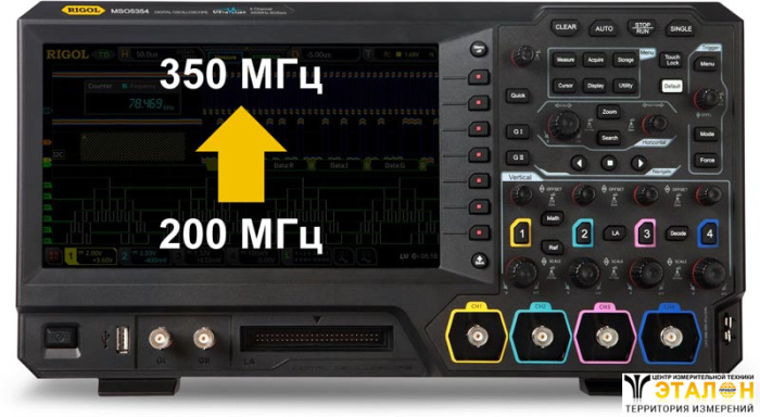 Опция MSO5000-BW2T3 позволяет увеличить полосу пропускания осциллографов Rigol серии MSO5000 с 200 МГц до 350 МГц.