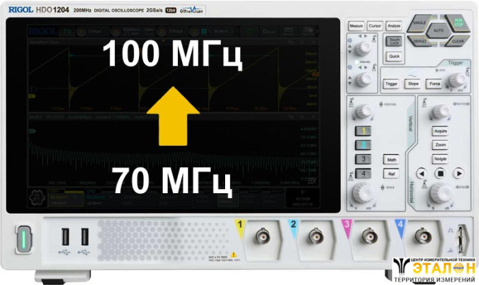 Опция DHO1000-BWU7T10 позволяет увеличить полосу пропускания осциллографов Rigol серии DHO1000 с 70 МГц до 100 МГц.